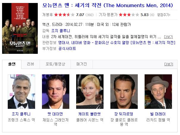 예술작품을 사수하라!! (세기의 작전) 고화질 The Monuments Men : 2014
