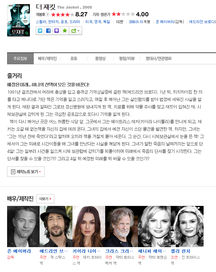 | The Jacket BLURAY.720p x264.mkv | 4.4 G | 01:43:00 | 1280x720 |
