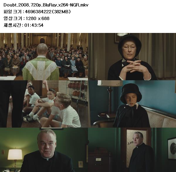 | Doubt.2008.720p.BluRay.x264-NGR.mkv | 4.4 G | 01:43:54 | 1280x720 |