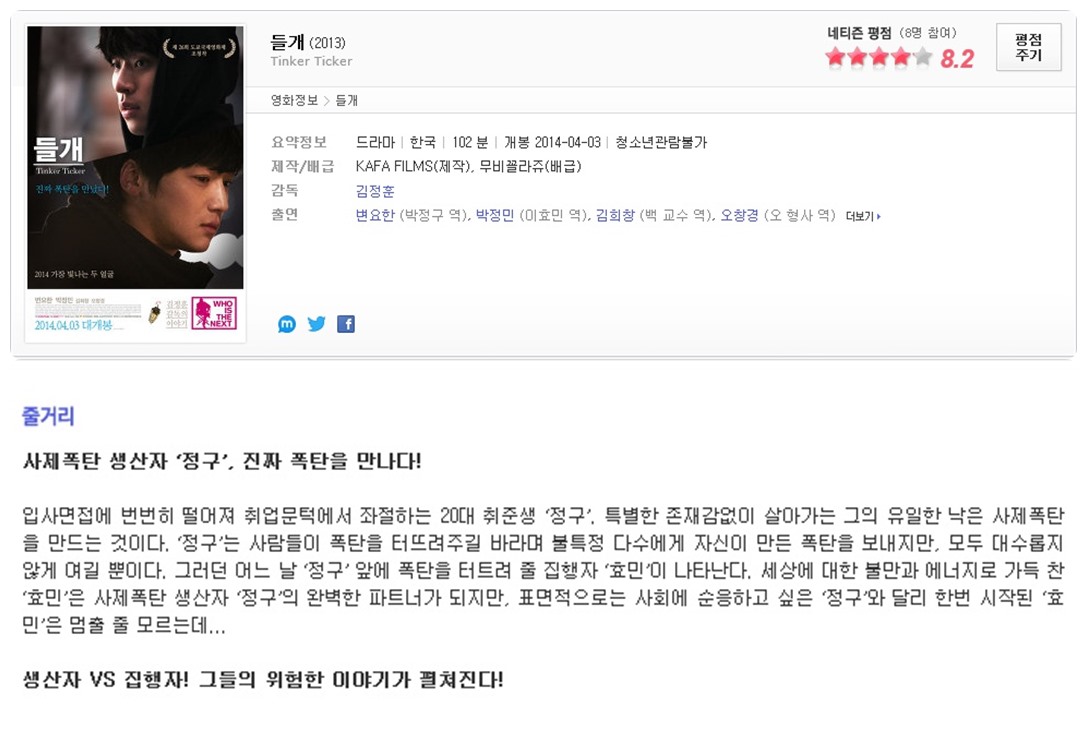 | 들판개.2013.720p.HDRip.avi | 2.6 G | 01:41:00 | 1280x720 |