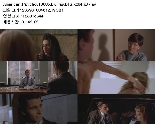 | American.Psycho.1080p.Blu-ray.DTS.x264-sJR.avi | 2.2 G | 01:42:00 | 1920x1080 |