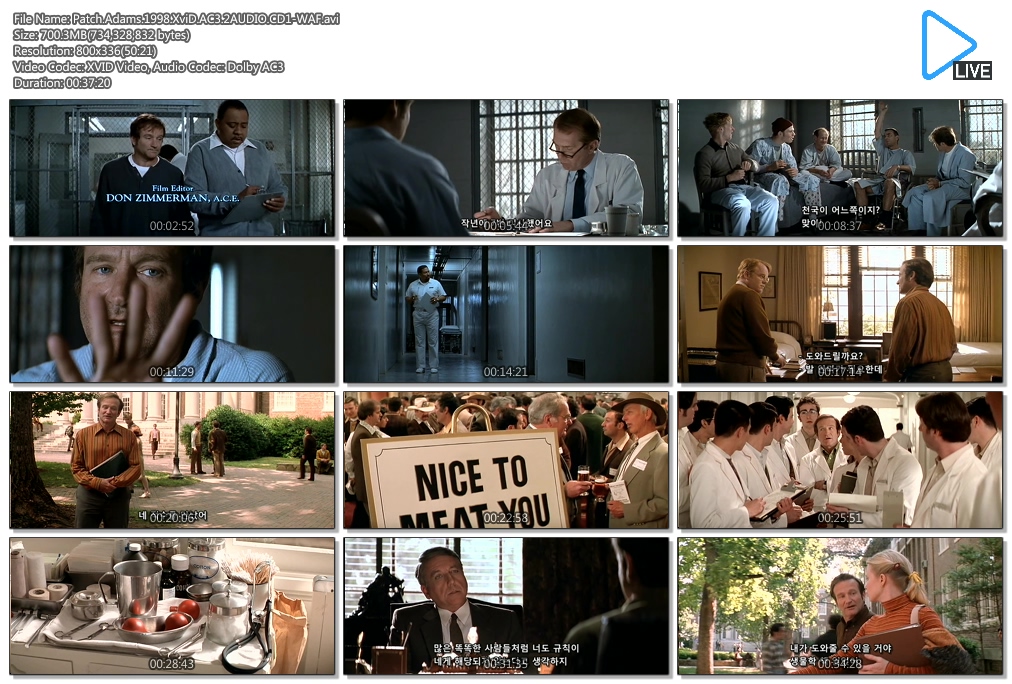 | 로빈 윌리엄스 주연 - 패치 아담스 [ 평점 9.10 ] (2).avi | 700.1 M | 00:33:34 | 800X335 |