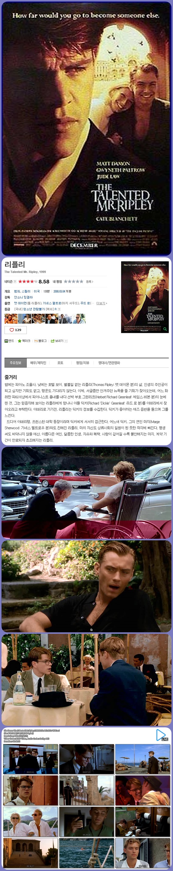| The.Talented.Mr.Ripley.1999.XviD.AC3.CD1-WAF.avi | 700.2 M | 00:48:02 | 800X431 |