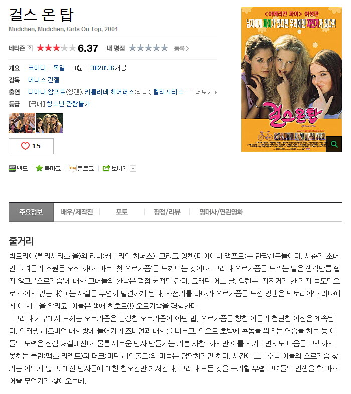 | 걸스 온 탑.Girls On Top.2002.H264.400p-NEUES.mp4 | 1.8 G | 01:25:00 | 800X444 |
