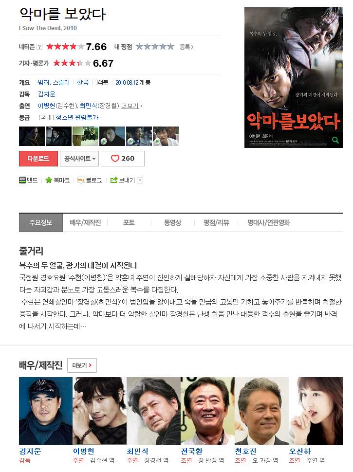 | 악마를 보았다 (2010) - 감독판.mp4 | 3.2 G | 02:22:00 | 1280X720 |