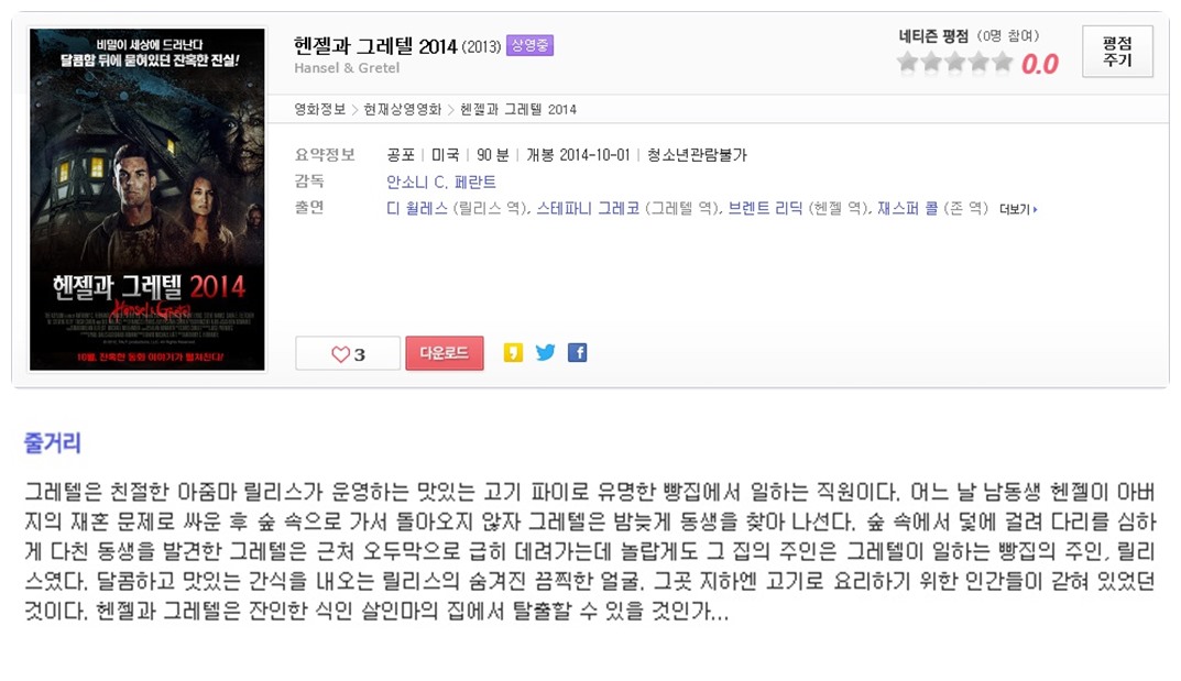 신작--달콤한 뒤에 숨겨왔던 잔혹한 진실--헨젤&그레텔[2014]자체자막