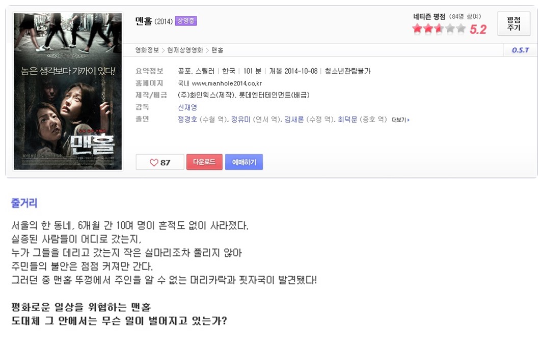 | 하수구 괴담.MKV | 1.2 G | 01:40:34 | 800X450 |