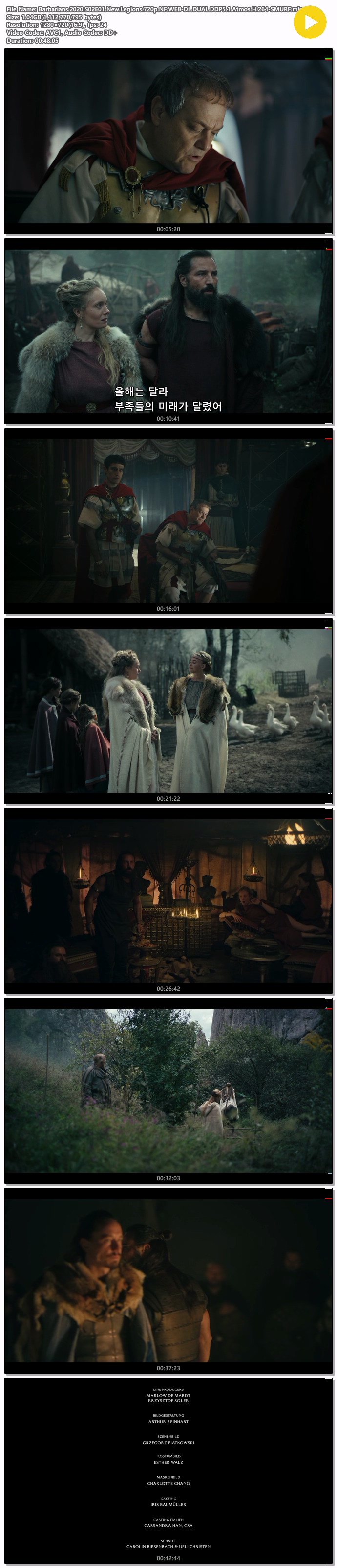 | Barbarians.2020.S02E01.New.Legions.720p.NF.WEB-DL.DUAL.DDP5.1.Atmos.H.264-SMURF.mkv | 1 G | 00:48:05 | 1280x720 |