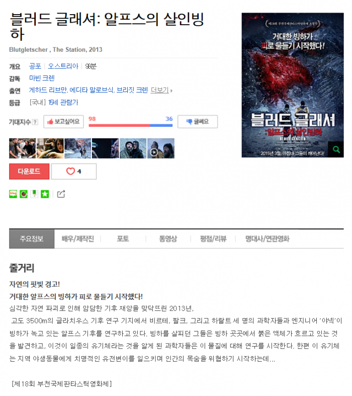 [블러드 글래셔: 알프스의 살인빙하] 2015 - 살인자가 되버린 빙ㅎr