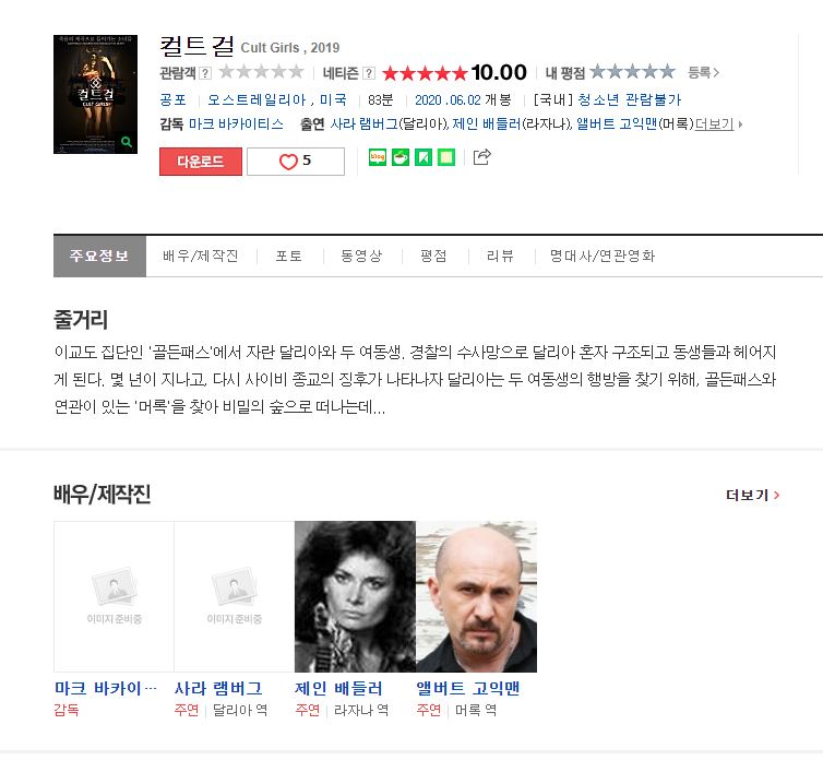 | 컬트걸.mp4 | 5.2 G | 01:23:23 | 1920x1080 |
