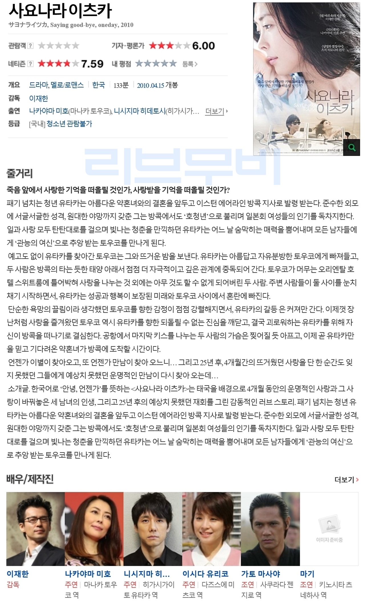 | Sayonara.Itsuka.2010.1080p.BluRay.x264-aBD.mkv | 10.9 G | 02:13:42 | 1920x1080 |