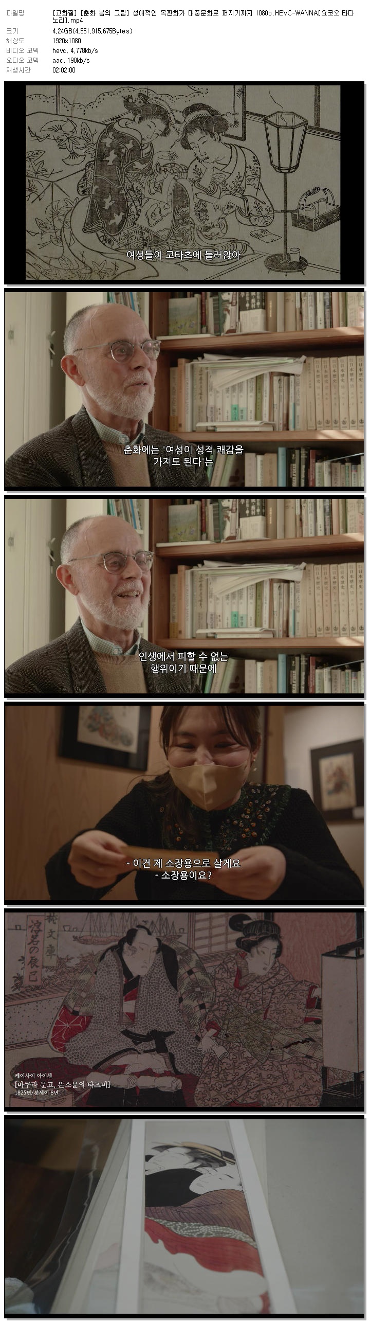 | [고화질] [춘화 봄의 그림] 성애적인 목판화가 대중문화로 퍼지기까지 1080p.HEVC-WANNA[요코오 타다노리].mp4 | 4.2 G | 02:02:00 | 1920x1080 |
