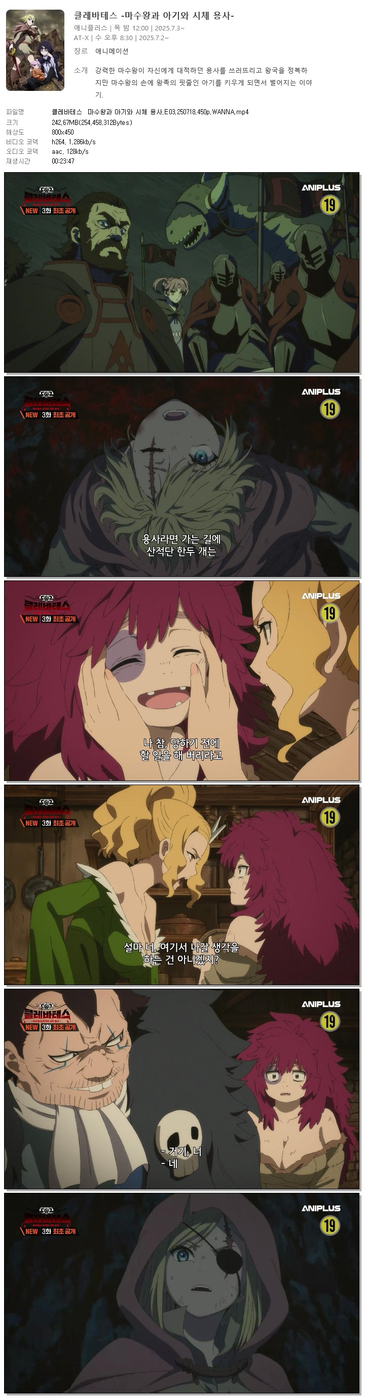 | 클레바테스 마수왕과 아기와 시체 용사.E03.250718.450p.WANNA.mp4 | 242.7 M | 00:23:47 | 800x450 |