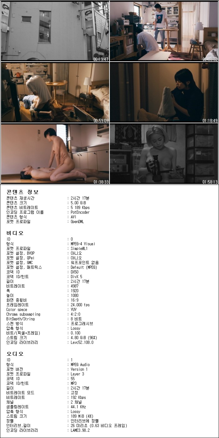 | 에로티즘 시나리오_자막O_등급O_1080.avi | 5 G | 02:17:54 | 1920x1080 |