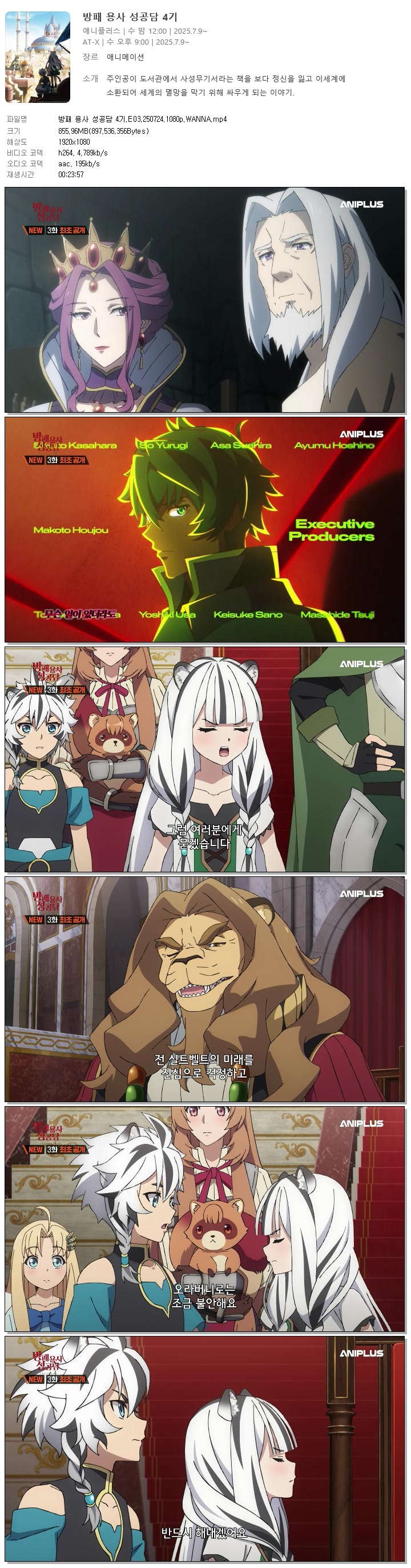 방패 용사 성공담 4기.E03.250724.1080p.WANNA.mp4 | 856 M | 00:23:57 | 1920x1080 |