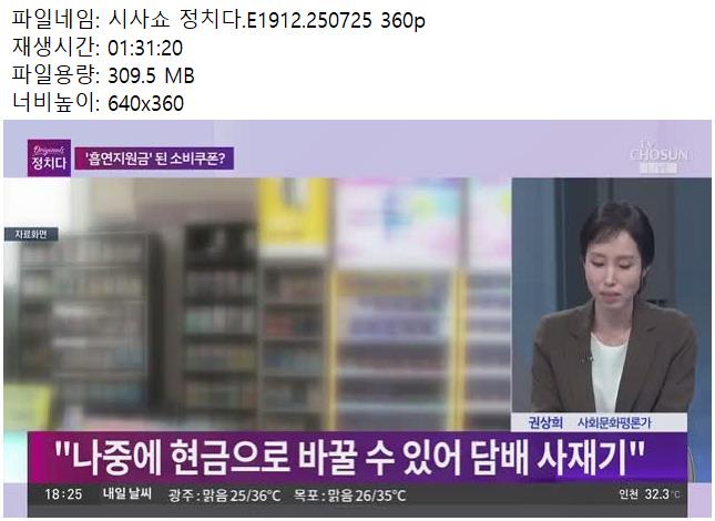 시사쇼 정치다.E1912.250725 360p.mp4 | 309.5 M | 01:31:20 | 640x360 |