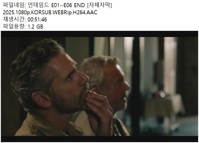 언테임드 E02 [자체자막] 2025.1080p.KORSUB.WEBRip.H264.AAC.mp4 | 1.2 G | 00:51:46 | 1920x1080 |