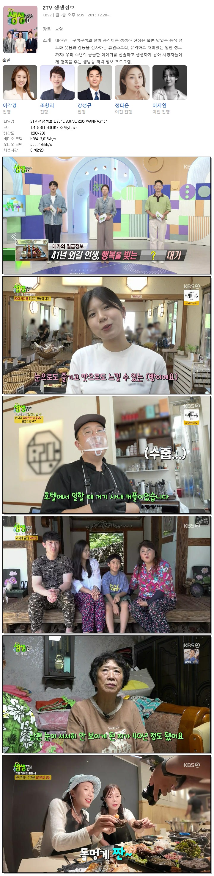 [KBS2] 2TV 생생정보.E2545.250730.720p.WANNA[이각경, 조항리].mp4 | 1.4 G | 01:02:28 | 1280x720 |