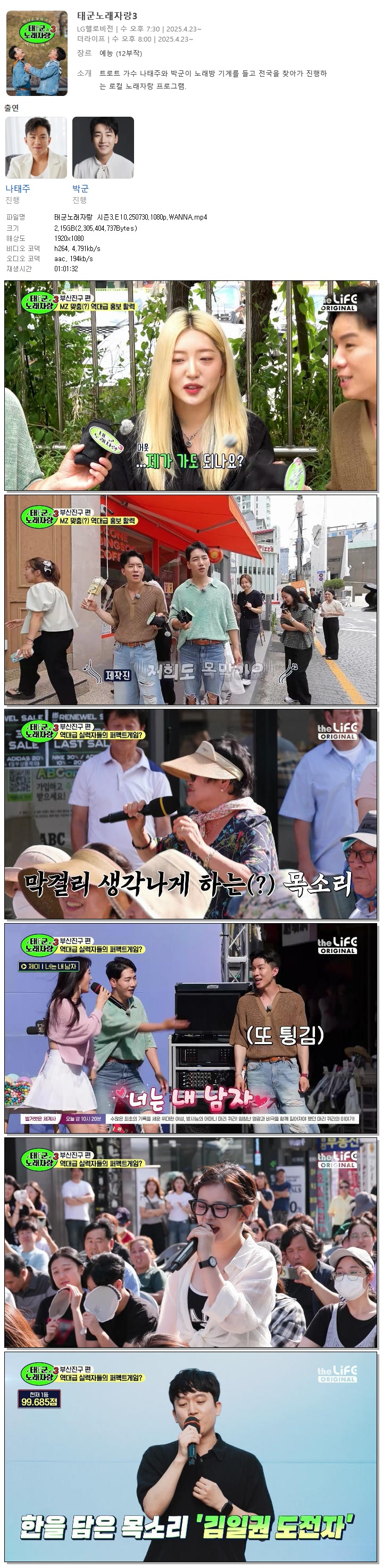 [더라이프] 태군노래자랑 시즌3.E10.250730.1080p.WANNA[나태주, 박군].mp4 | 2.1 G | 01:01:32 | 1920x1080 |