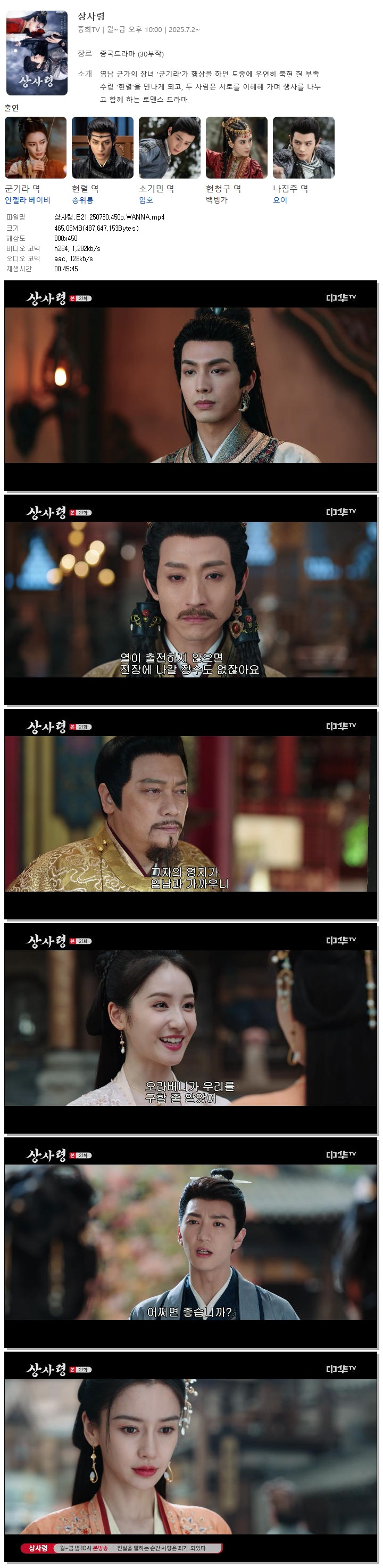 [중화TV] 상사령.E21.250730.450p.WANNA[송위룡, 안젤라베이비].mp4 465.1 M 00:45:45 800x450