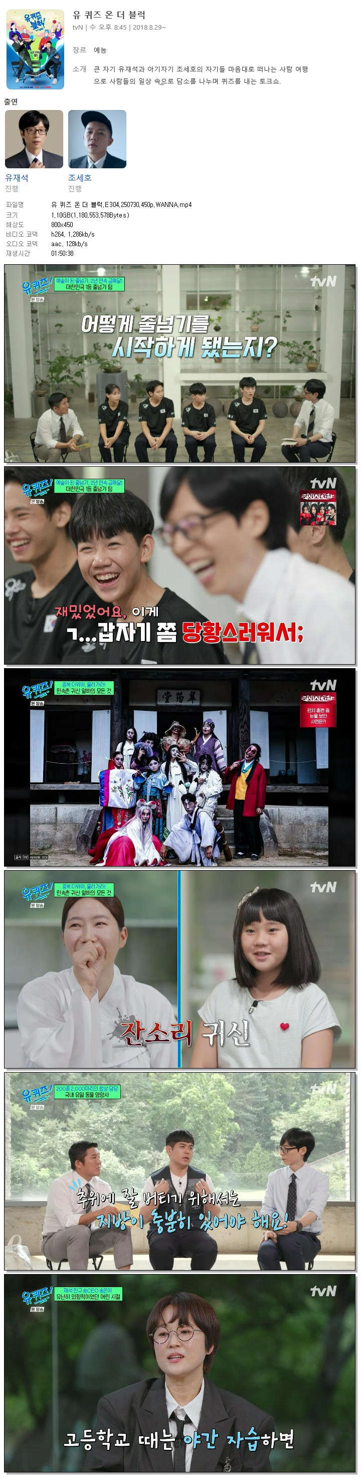 [TVN] 유 퀴즈 온 더 블럭.E304.250730.450p.WANNA[송은이].mp4 | 1.1 G | 01:50:38 | 800x450 |