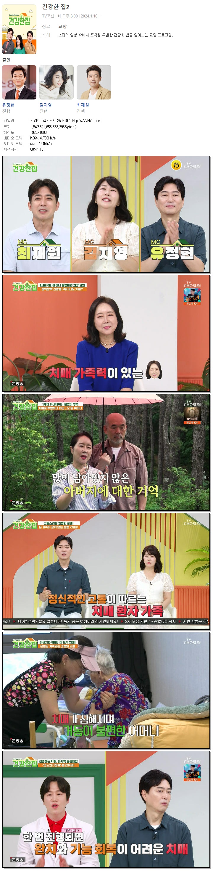 | [TV조선] 건강한 집2.E71.250819.1080p.WANNA[유정현, 김지영].mp4 | 1.5 G | 00:44:15 | 1920x1080 |