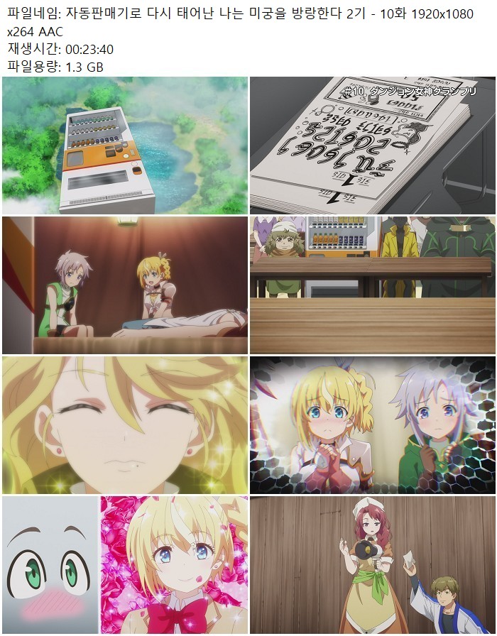 | 자동판매기로 다시 태어난 나는 미궁을 방랑한다 2기 - 10화 1920x1080 x264 AAC.mkv | 1.3 G | 00:23:40 | 1920x1080 |