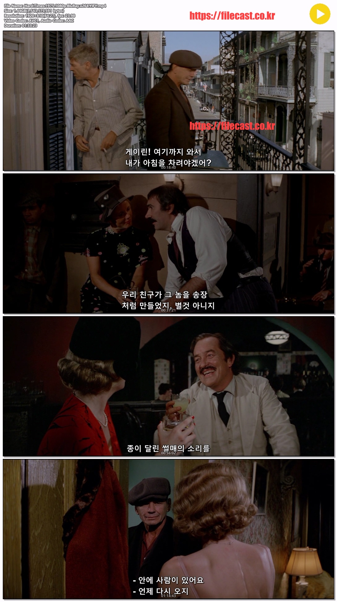 | Hard.Times.1975.1080p.BluRay.x264.YIFY.mp4 | 1.4 G | 01:33:23 | 1920x1080 |