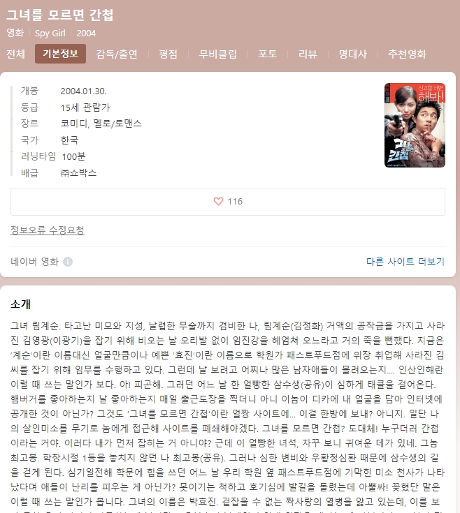 ico그녀를 모르면 간첩 2004 - 공유, 김정화, 남상미 (코미디,로맨스)/