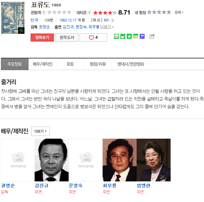 ico[고전] 표류도 1960 - 김진규, 문정숙, 최무룡, 엄앵란 (로맨스)/