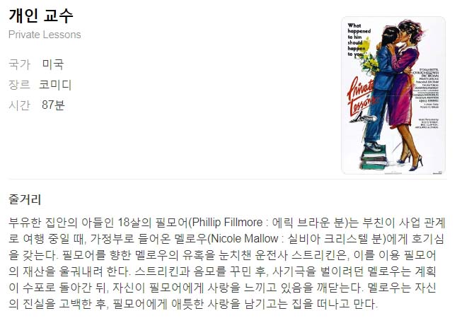 | Private Lessons.mkv | 2.9 G | 01:27:00 | 1920x1080 |