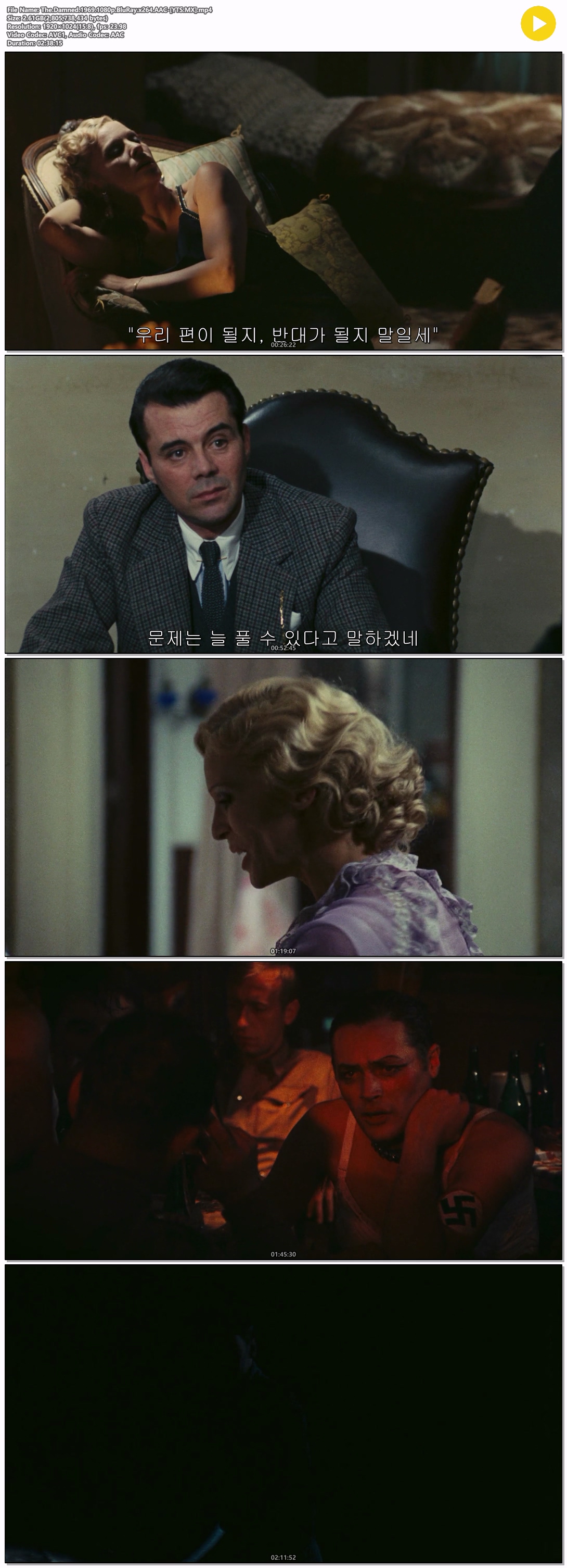 | The.Damned.1969.1080p.BluRay.x264.AAC-[YTS.MX].mp4 | 2.6 G | 02:38:15 | 1920x1080 |