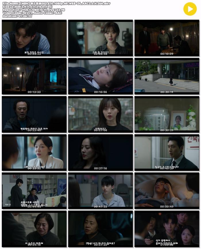 | [MBN] 퍼스트레이디.E10.1080p.NF.WEB-DL.AAC2.0.H.264.mkv | 2.3 G | 01:04:00 | 1920x1080 |