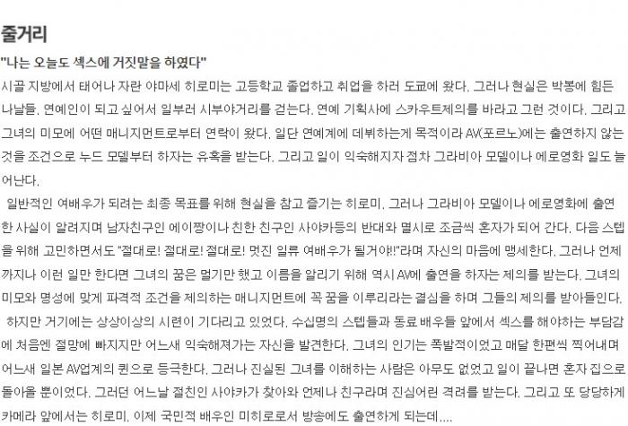 [일본영화] [누드] 내가 미히로다 일본의 국민적 AV배우 미히로의 충격의 자서전