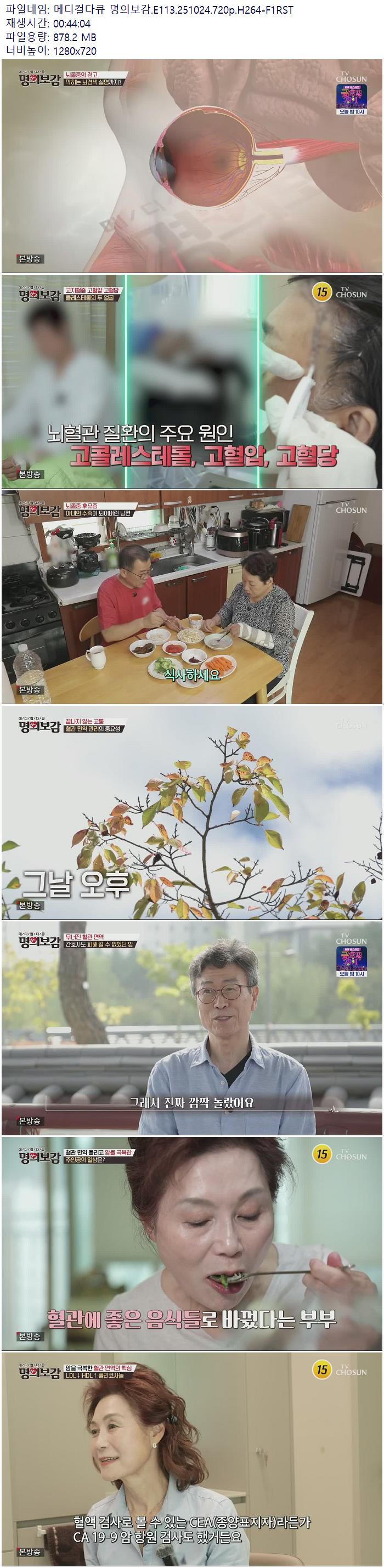 | 메디컬다큐 명의보감.E113.251024.720p.H264-F1RST.mp4 | 878.2 M | 00:44:04 | 1280x720 |