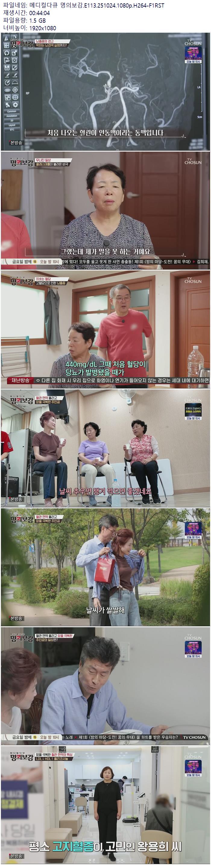 | 메디컬다큐 명의보감.E113.251024.1080p.H264-F1RST.mp4 | 1.5 G | 00:44:04 | 1920x1080 |