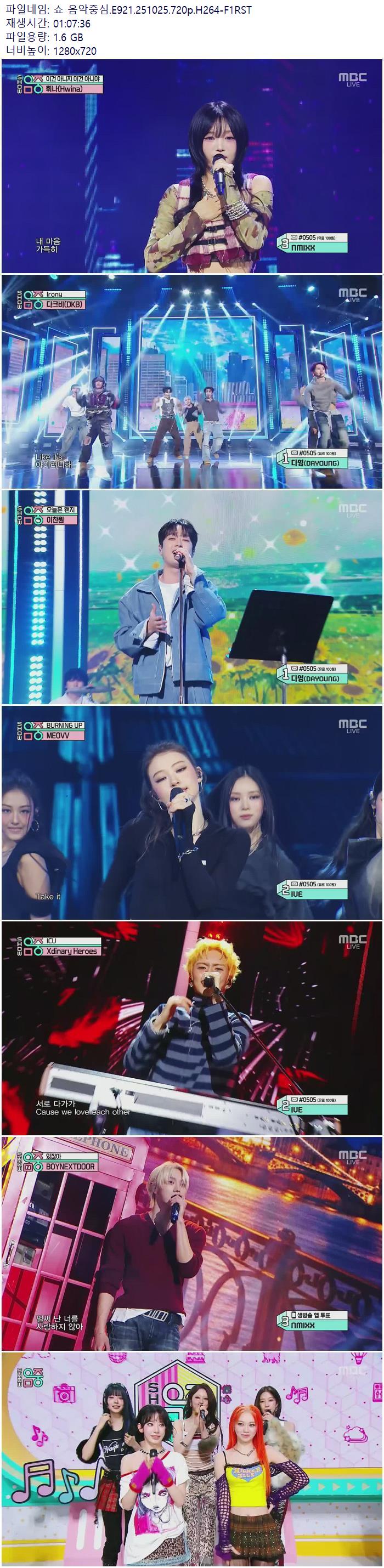 | 쇼! 음악중심.E921.251025.720p.H264-F1RST.mp4 | 1.6 G | 01:07:00 | 1280x720 |