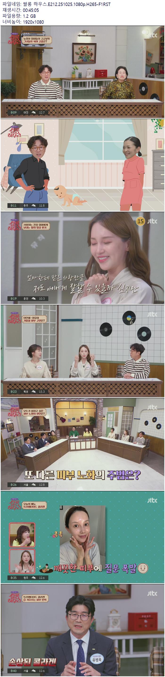 | 쌀롱 하우스.E212.251025.1080p.H265-F1RST.mp4 | 1.2 G | 00:45:05 | 1920x1080 |