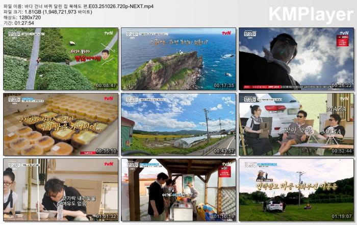 | 바다 건너 바퀴 달린 집 북해도 편.E03.251026.720p-NEXT.mp4 | 1.8 G | 01:27:00 | 1280x720 |