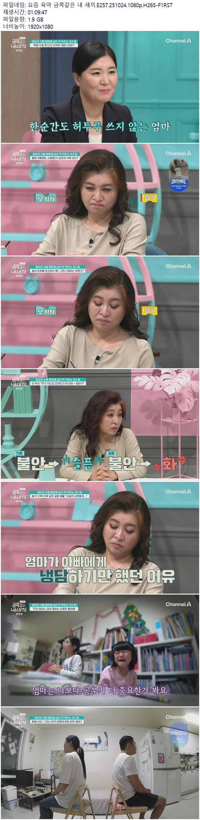 | 요즘 육아 금쪽같은 내 새끼.E257.251024.1080p.H265-F1RST.mp4 | 1.9 G | 01:09:00 | 1920x1080 |