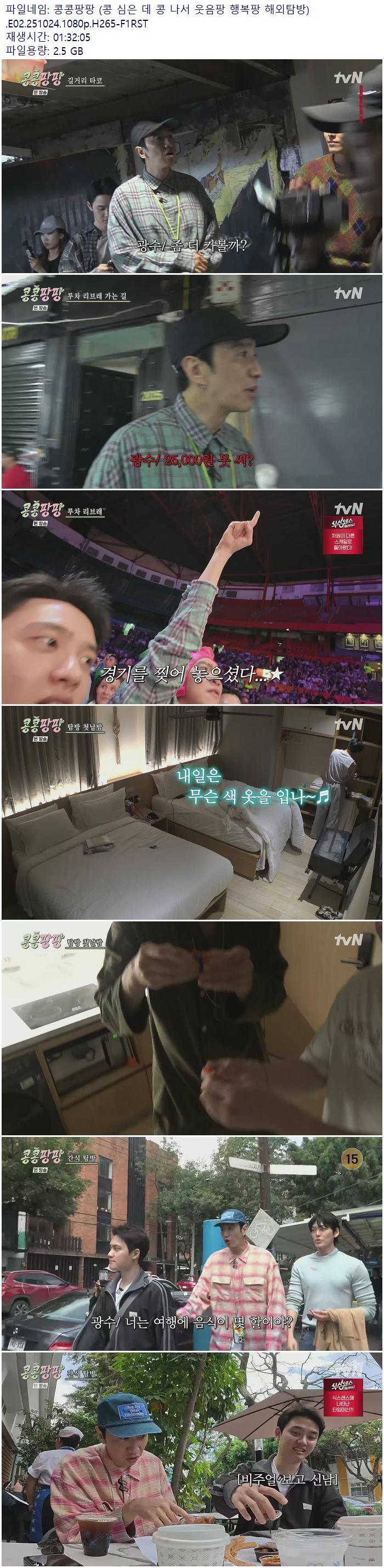 | 콩콩팡팡 (콩 심은 데 콩 나서 웃음팡 행복팡 해외탐방).E02.251024.1080p.H265-F1RST.mp4 | 2.5 G | 01:32:00 | 1920x1080 |