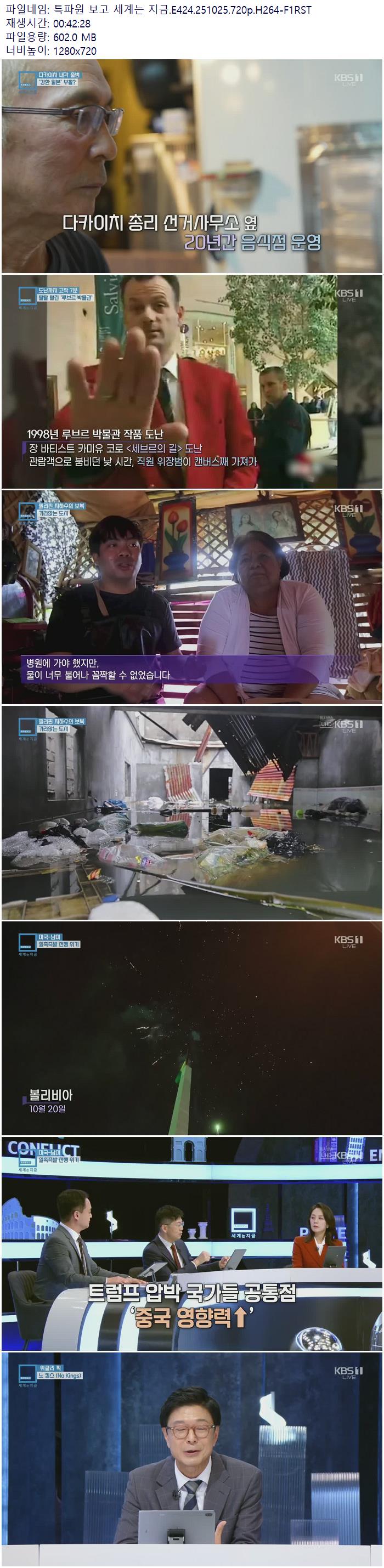| 특파원 보고 세계는 지금.E424.251025.720p.H264-F1RST.mp4 | 602 M | 00:42:28 | 1280x720 |