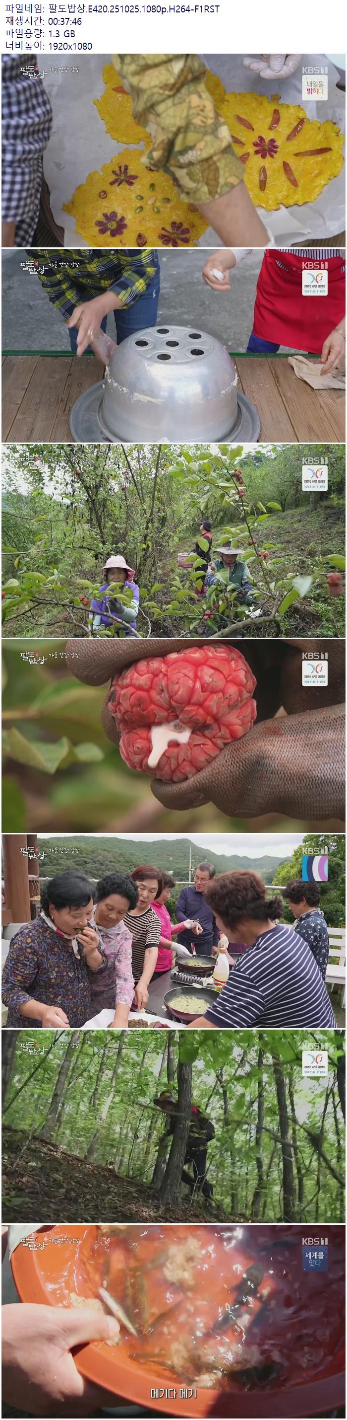 | 팔도밥상.E420.251025.1080p.H264-F1RST.mp4 | 1.3 G | 00:37:46 | 1920x1080 |