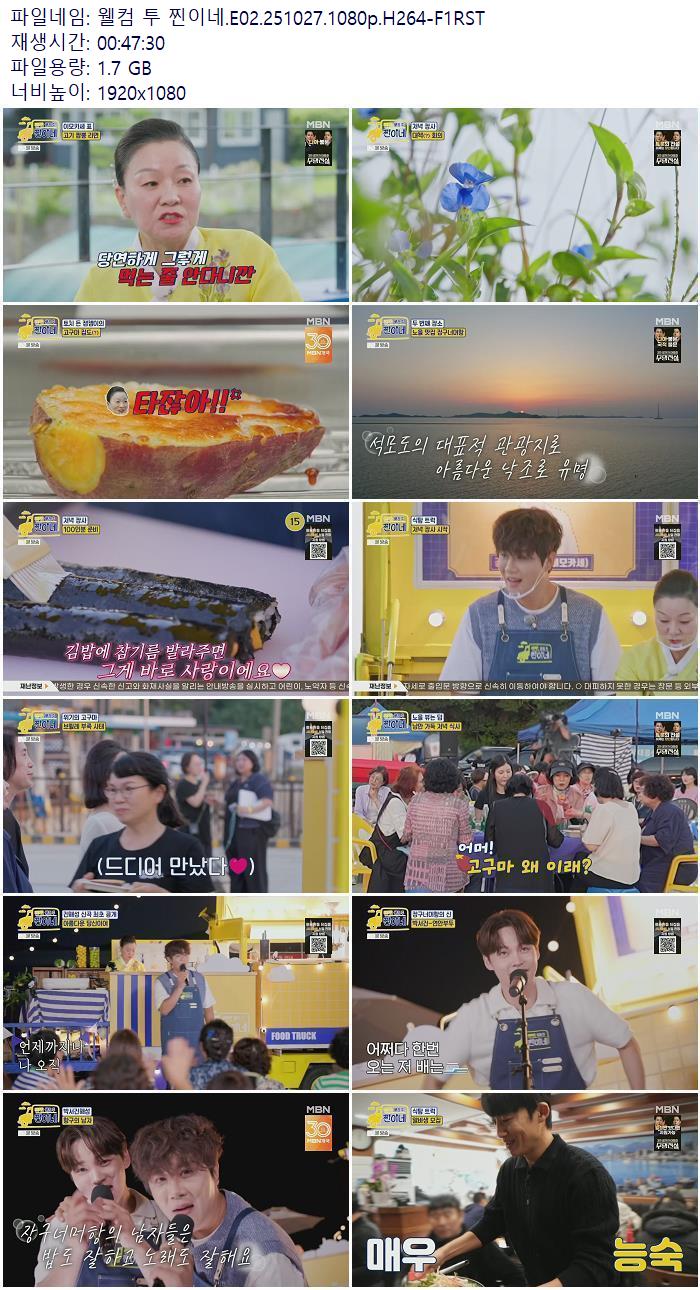 | 웰컴 투 찐이네.E02.251027.1080p.H264-F1RST.mp4 | 1.7 G | 00:47:30 | 1920x1080 |