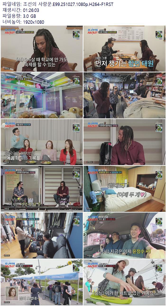 | 조선의 사랑꾼.E99.251027.1080p.H264-F1RST.mp4 | 3 G | 01:26:00 | 1920x1080 |