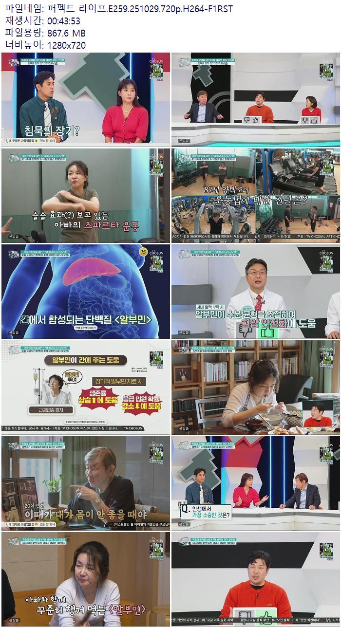 | 퍼펙트 라이프.E259.251029.720p.H264-F1RST.mp4 | 867.6 M | 00:43:53 | 1280x720 |