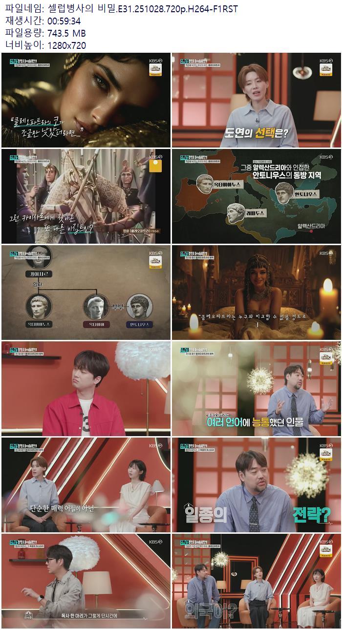 | 셀럽병사의 비밀.E31.251028.720p.H264-F1RST.mp4 | 743.5 M | 00:59:34 | 1280x720 |