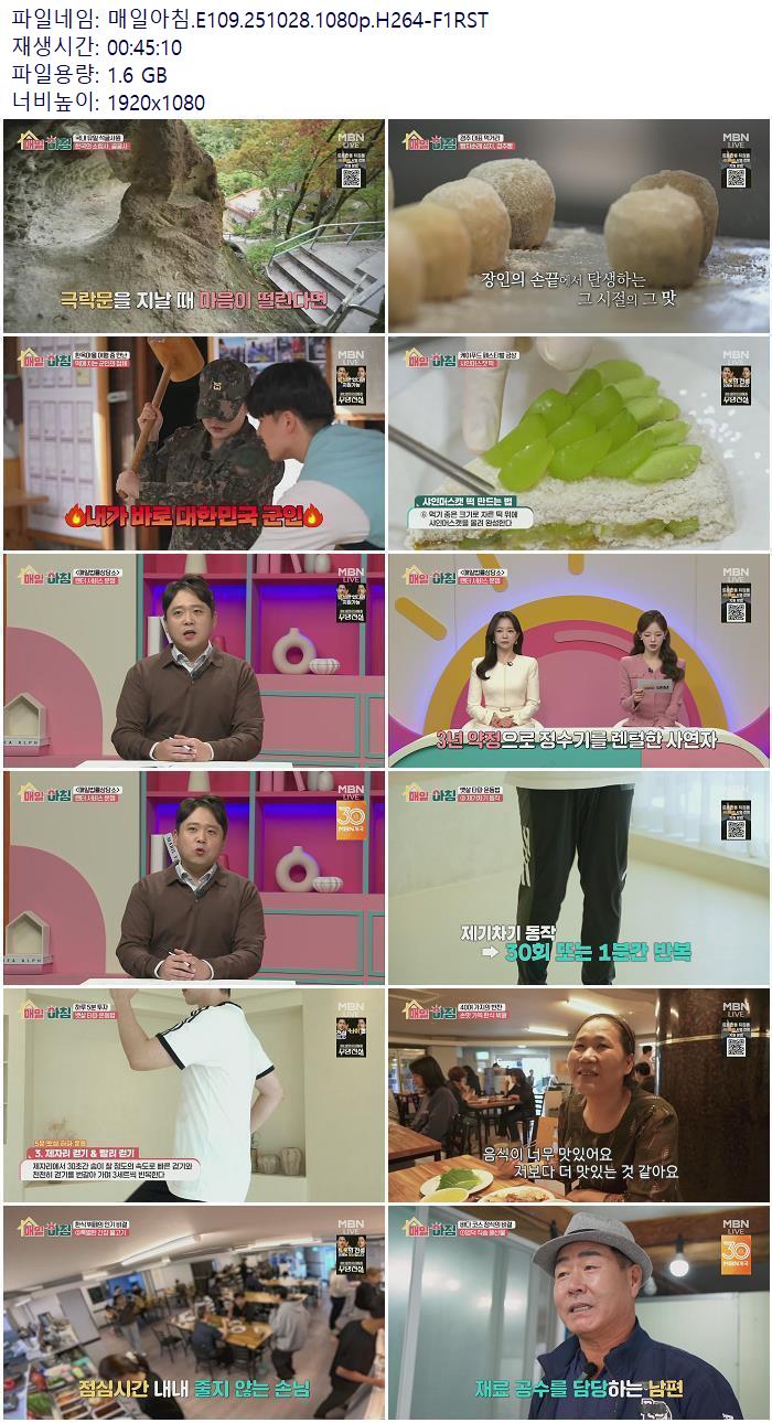 | 매일아침.E109.251028.1080p.H264-F1RST.mp4 | 1.6 G | 00:45:10 | 1920x1080 |