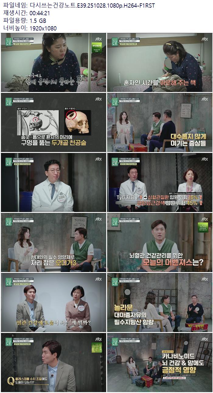 | 다시쓰는건강노트.E39.251028.1080p.H264-F1RST.mp4 | 1.5 G | 00:44:21 | 1920x1080 |