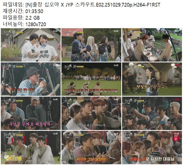 | [N]출장 십오야 X JYP 스카우트.E02.251029.720p.H264-F1RST.mp4 | 2.2 G | 01:35:00 | 1280x720 |
